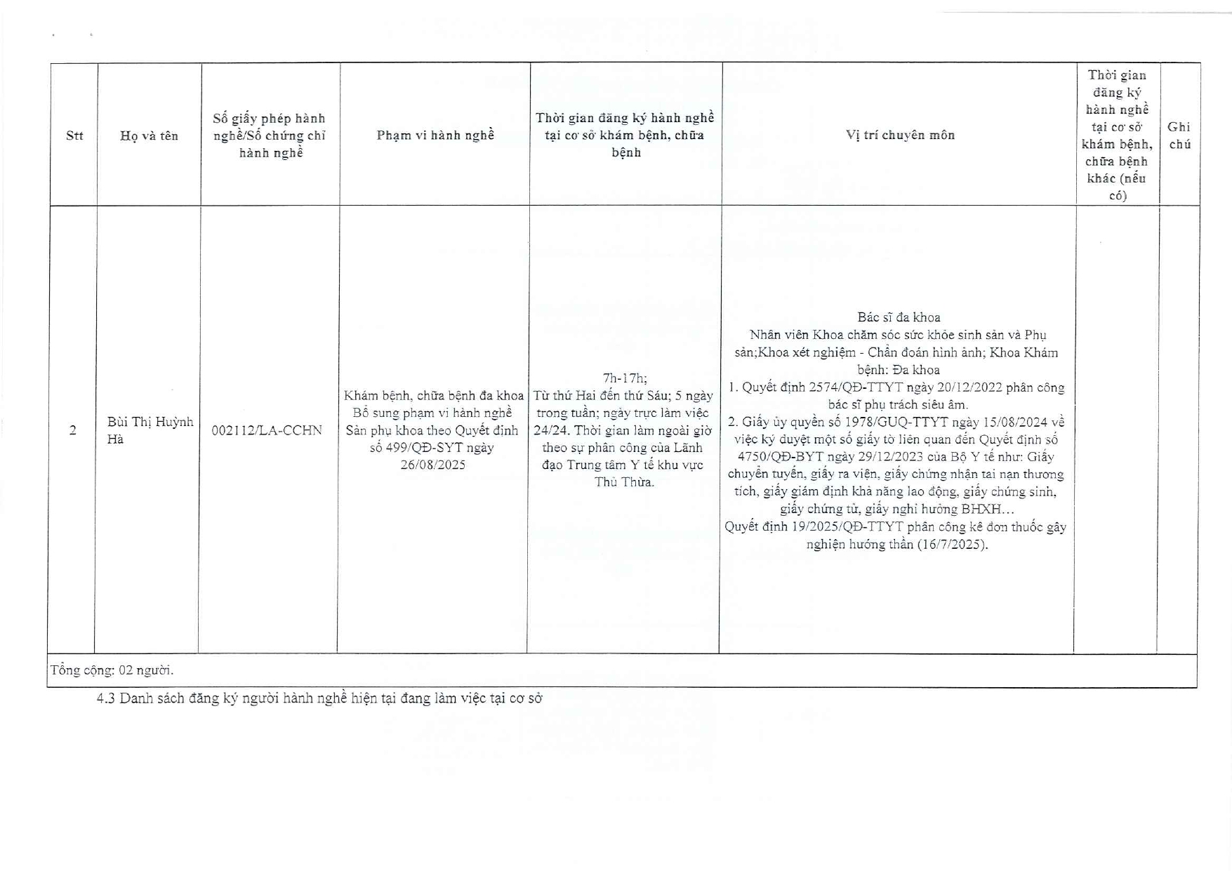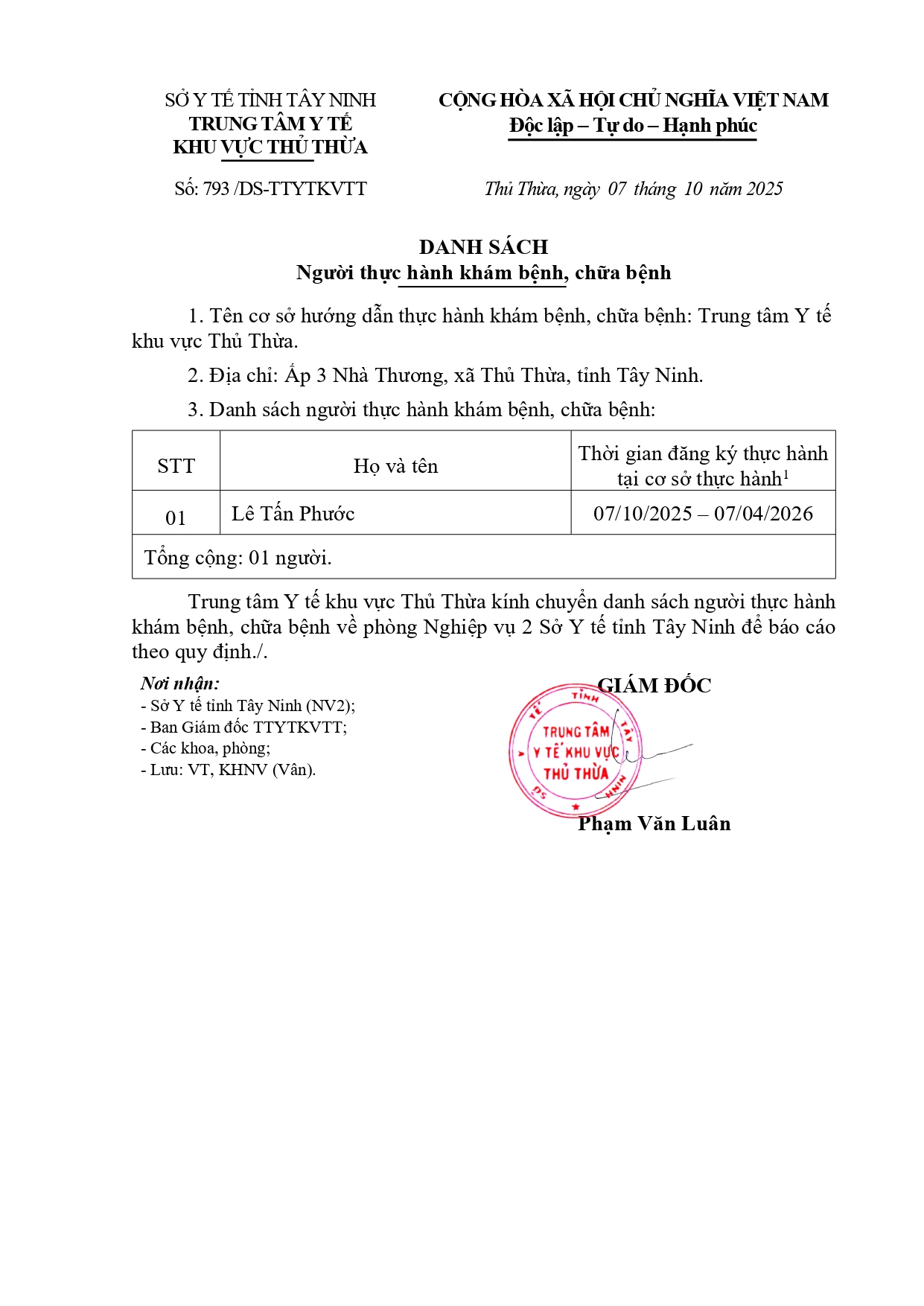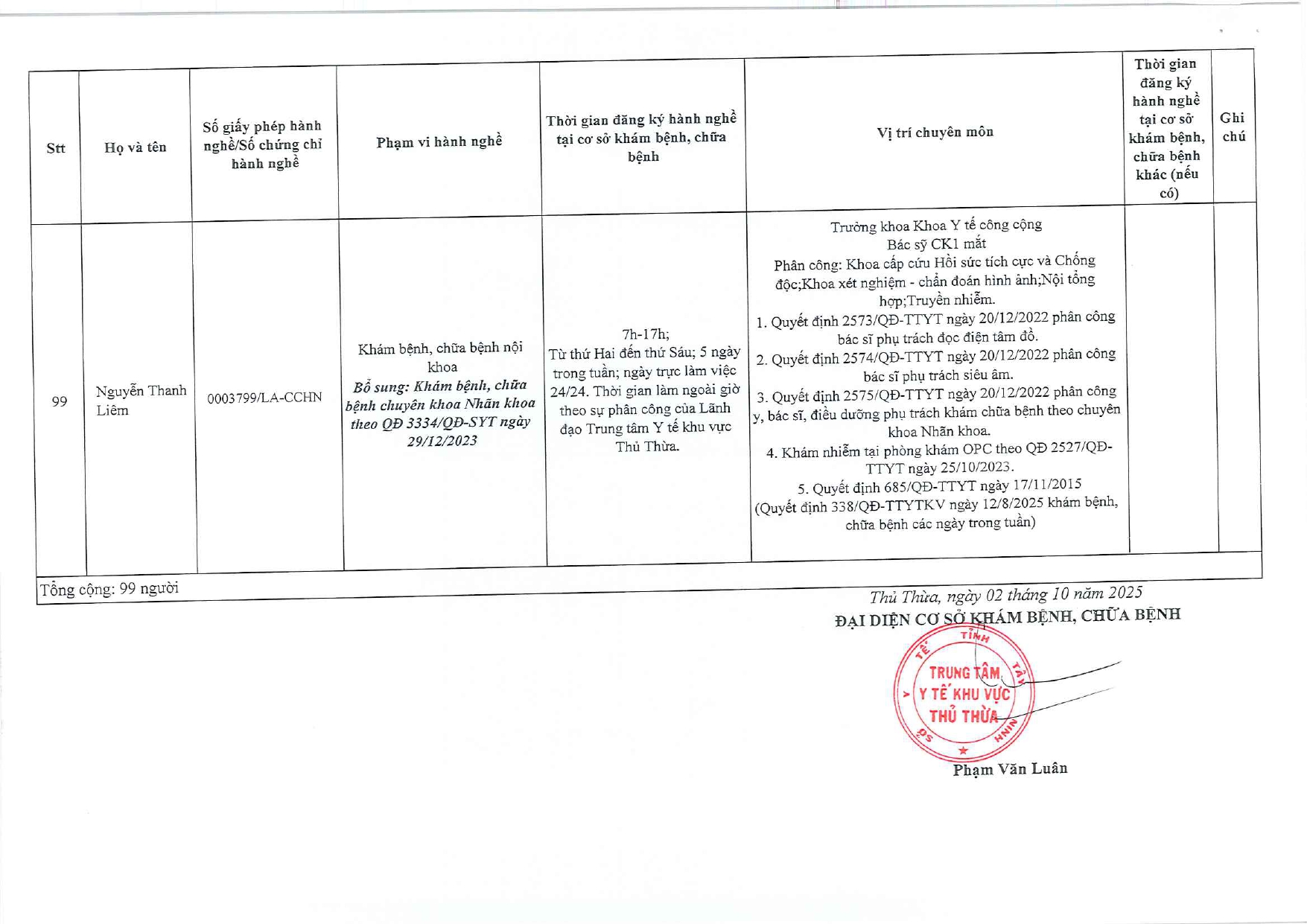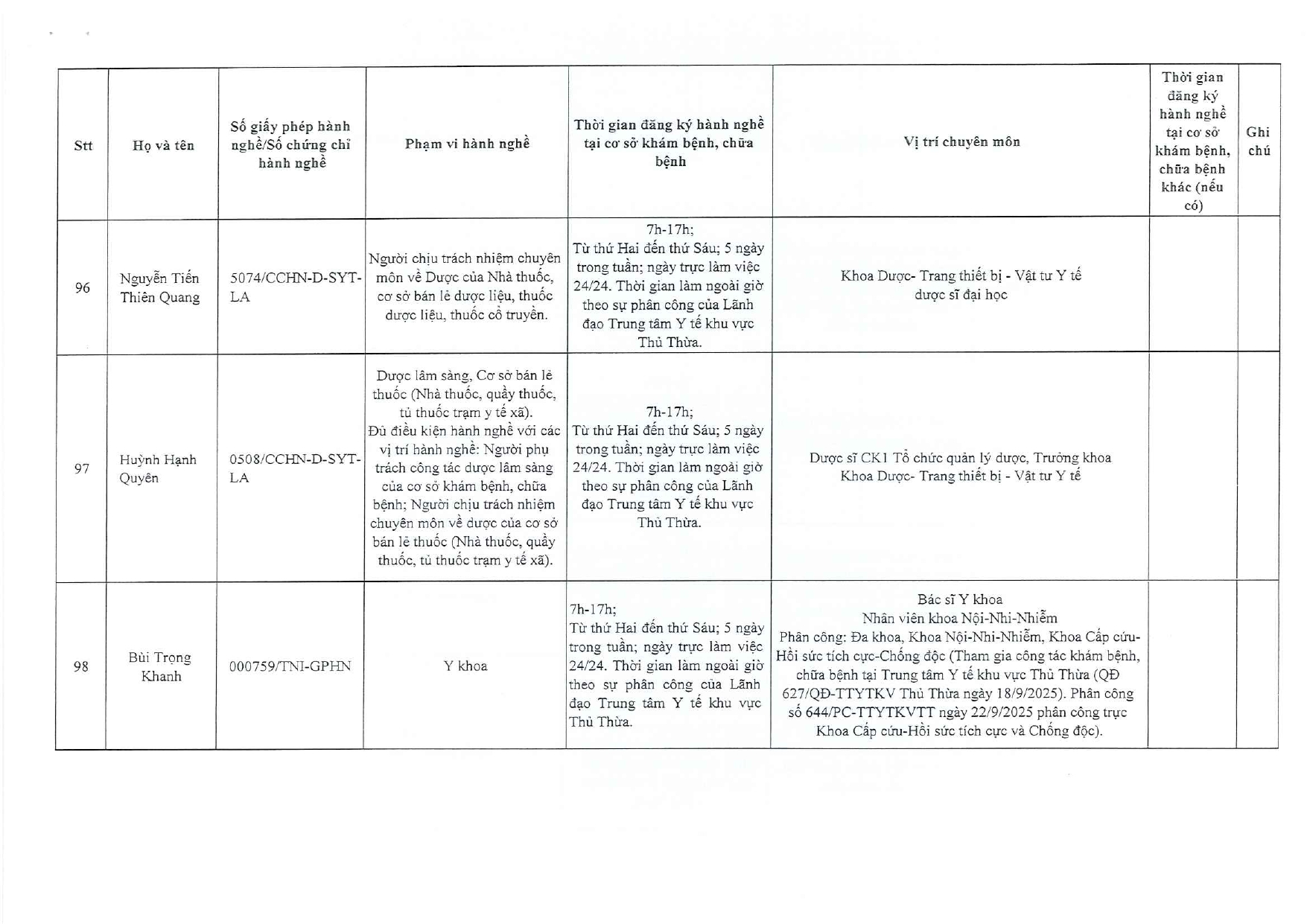 DANH SÁCH Người thực hành khám bệnh, chữa bệnh - 24/09/2025