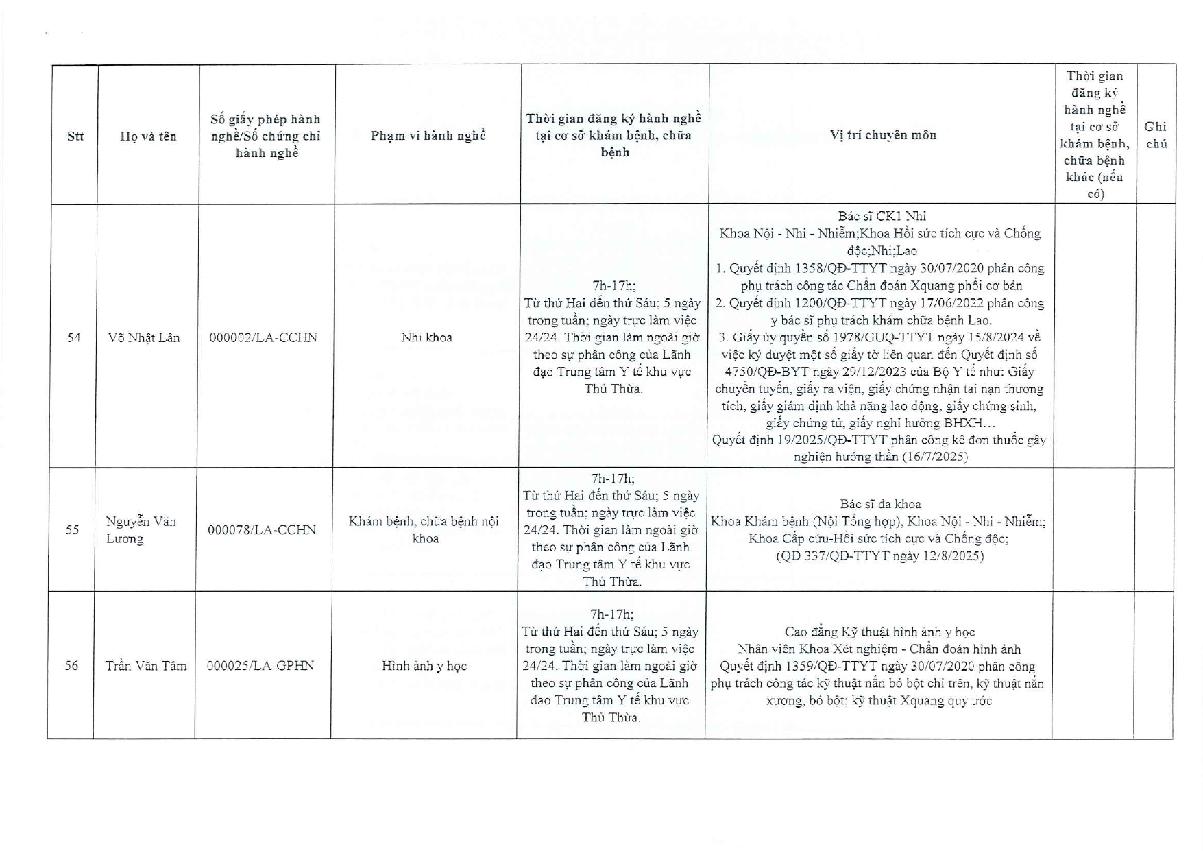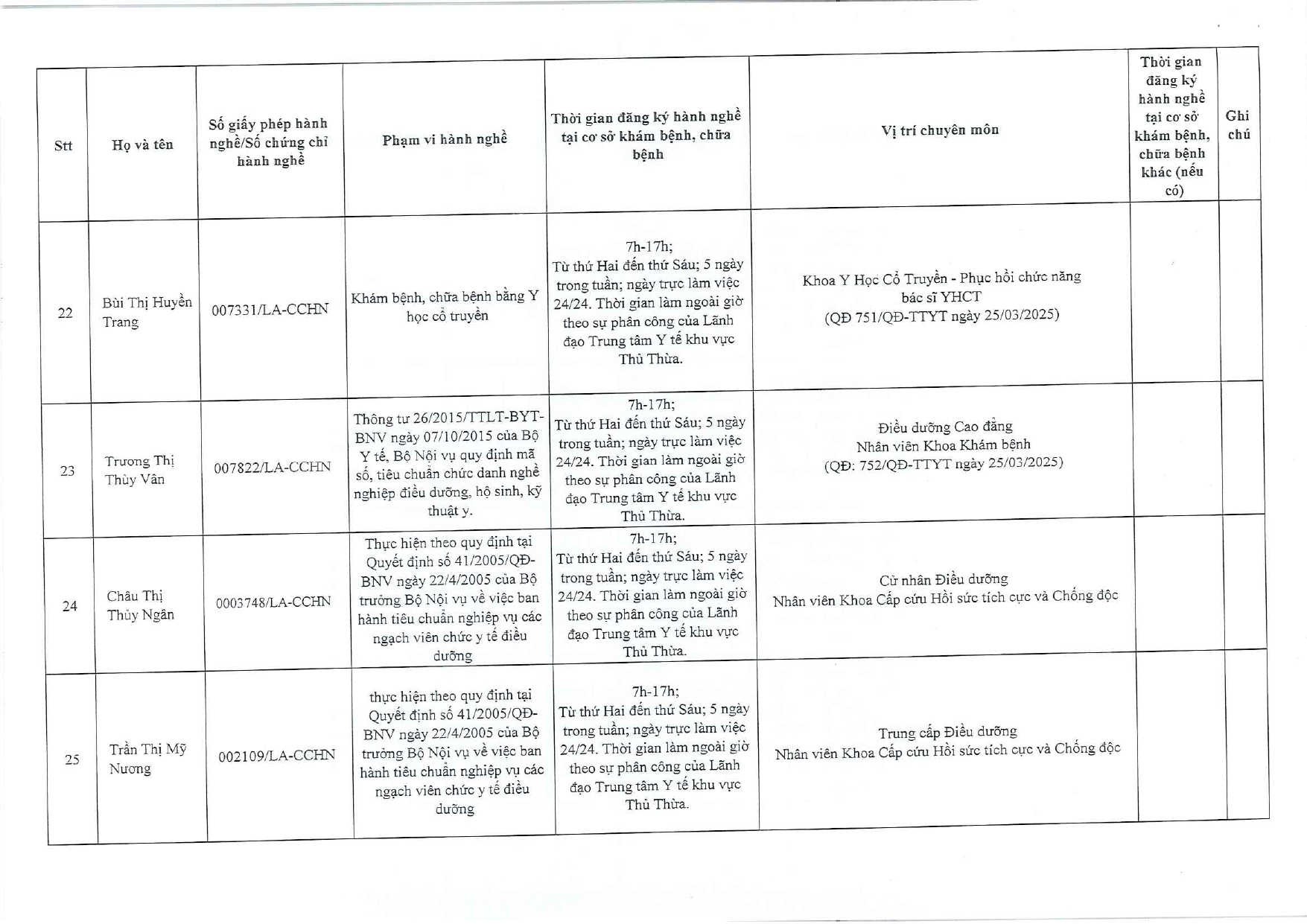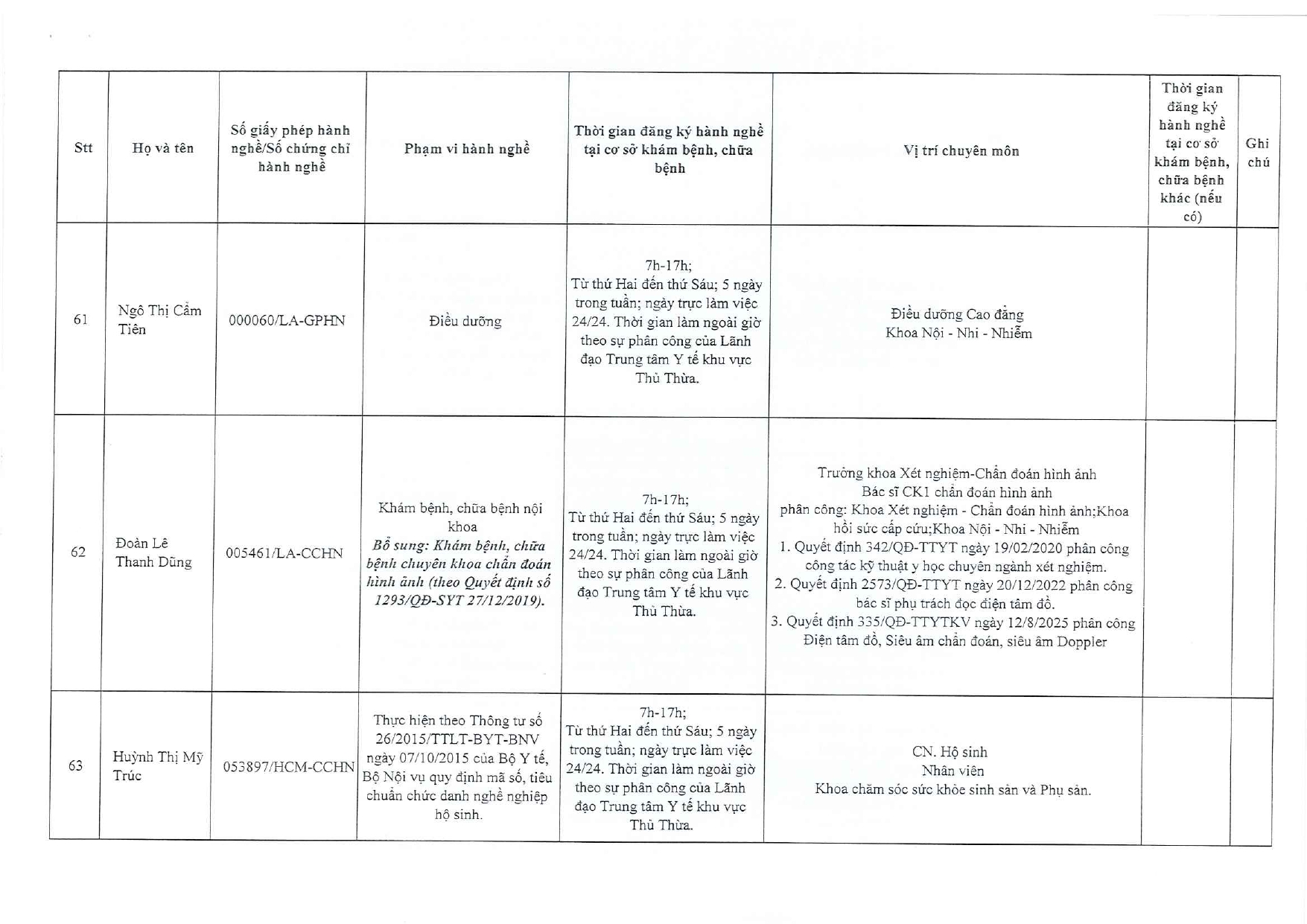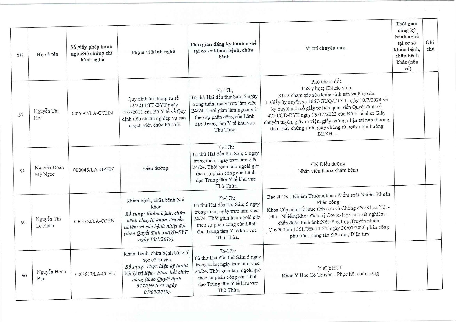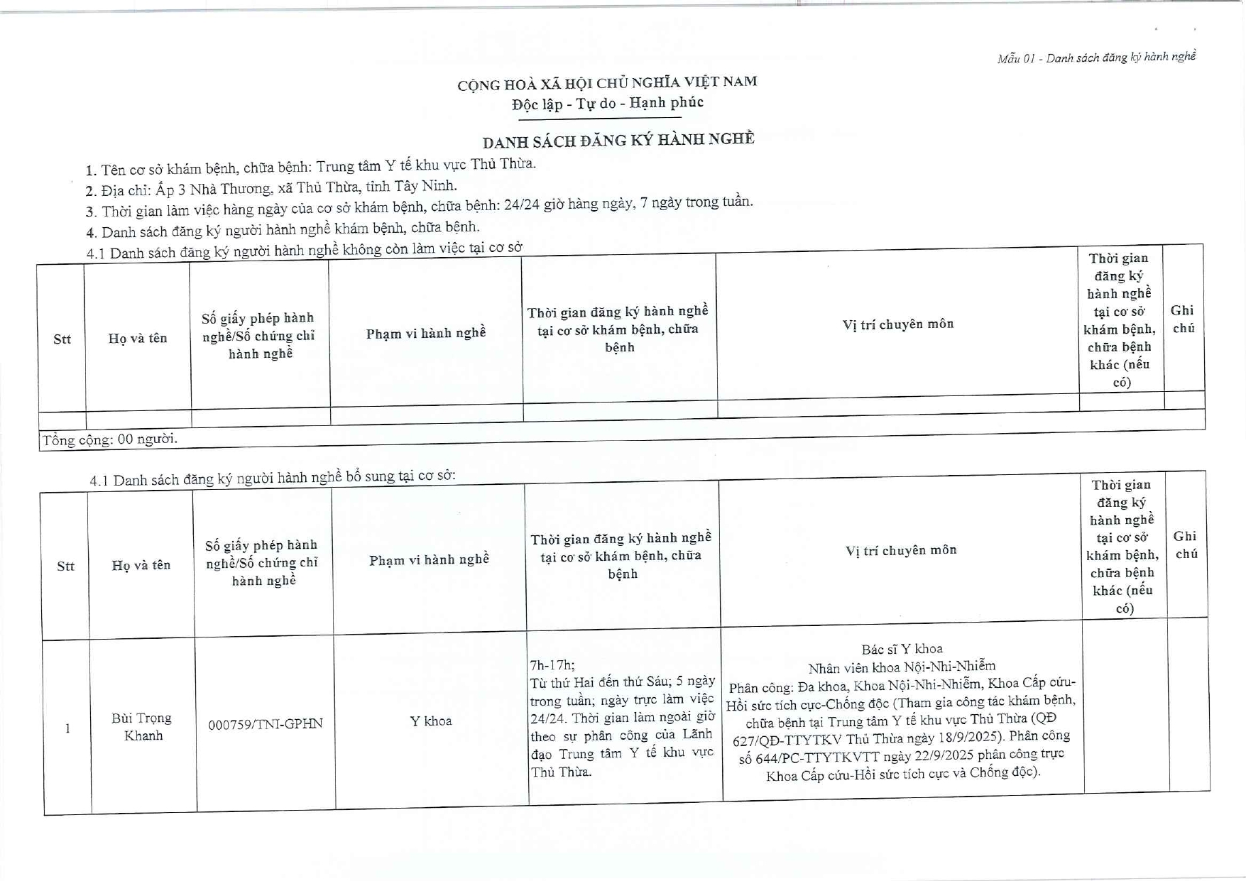 Về việc đăng ký người hành nghề khám bệnh, chữa bệnh tại Trung tâm Y tế khu vực Thủ Thừa - 09/10/2025