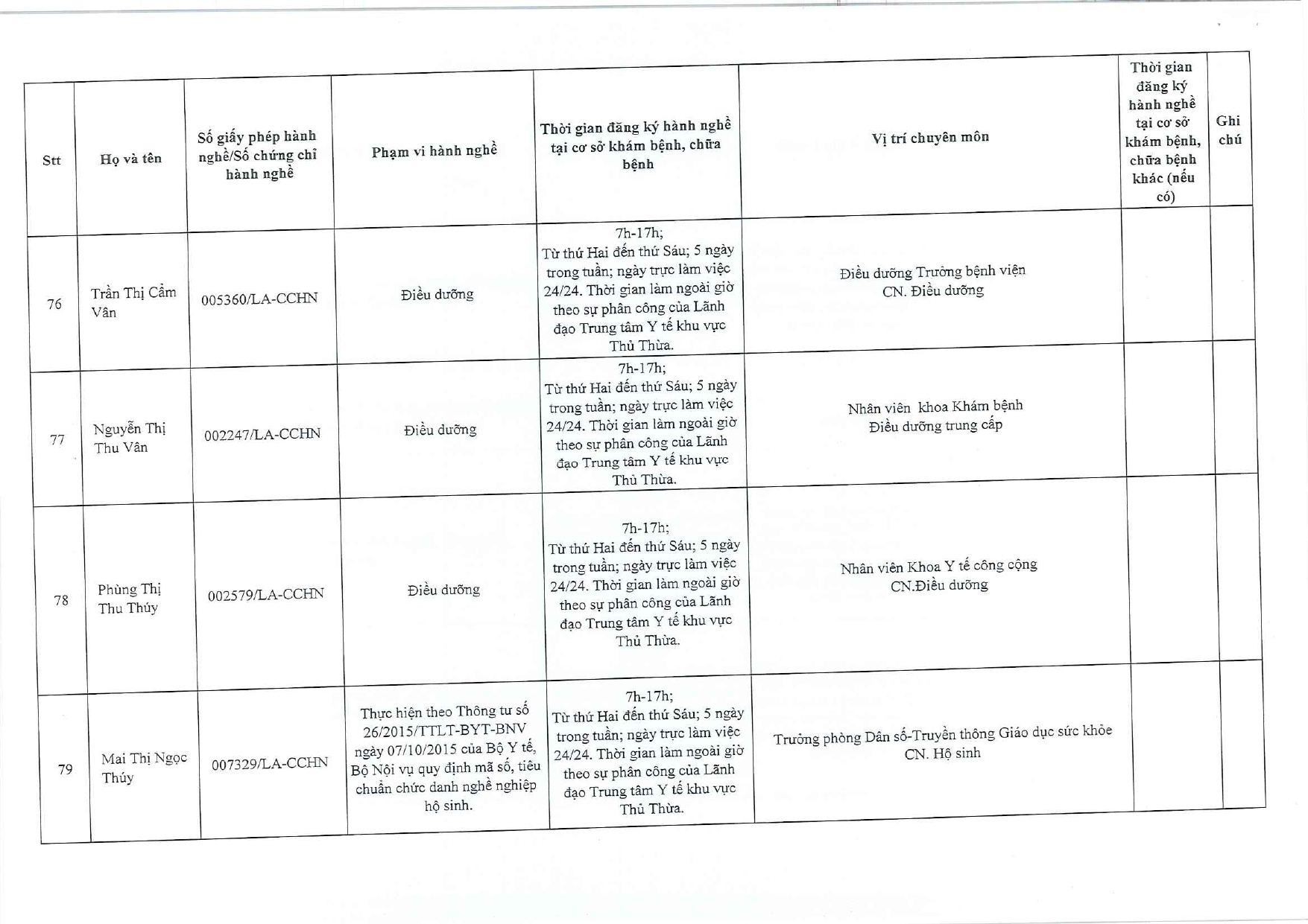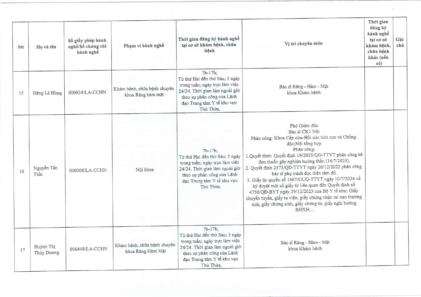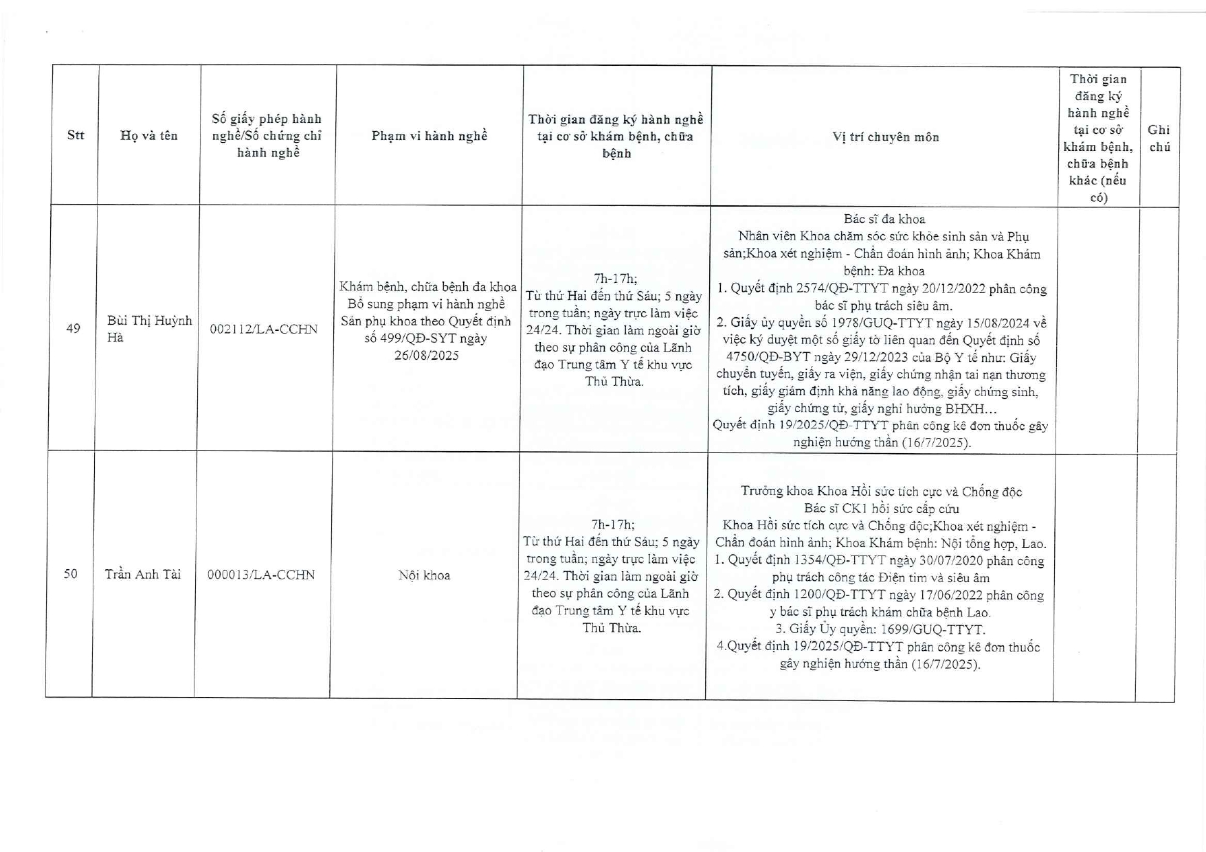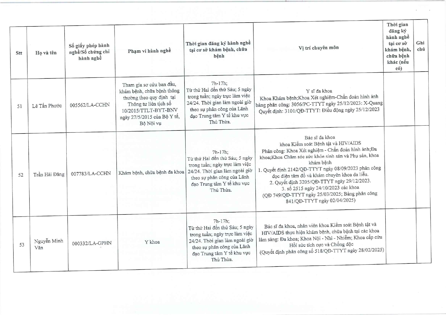 Về việc đăng ký người hành nghề khám bệnh, chữa bệnh tại Trung tâm Y tế khu vực Thủ Thừa - 09/10/2025