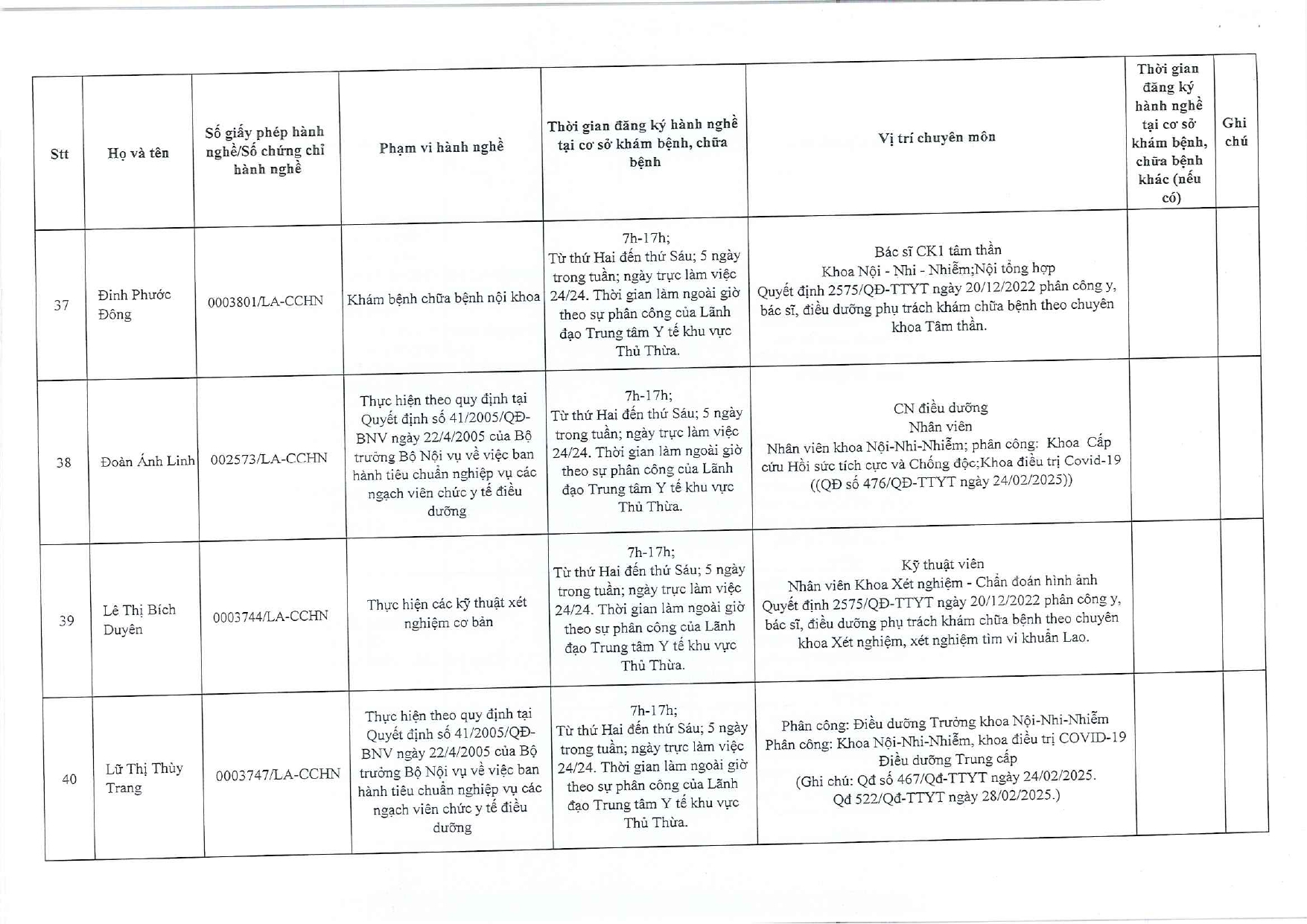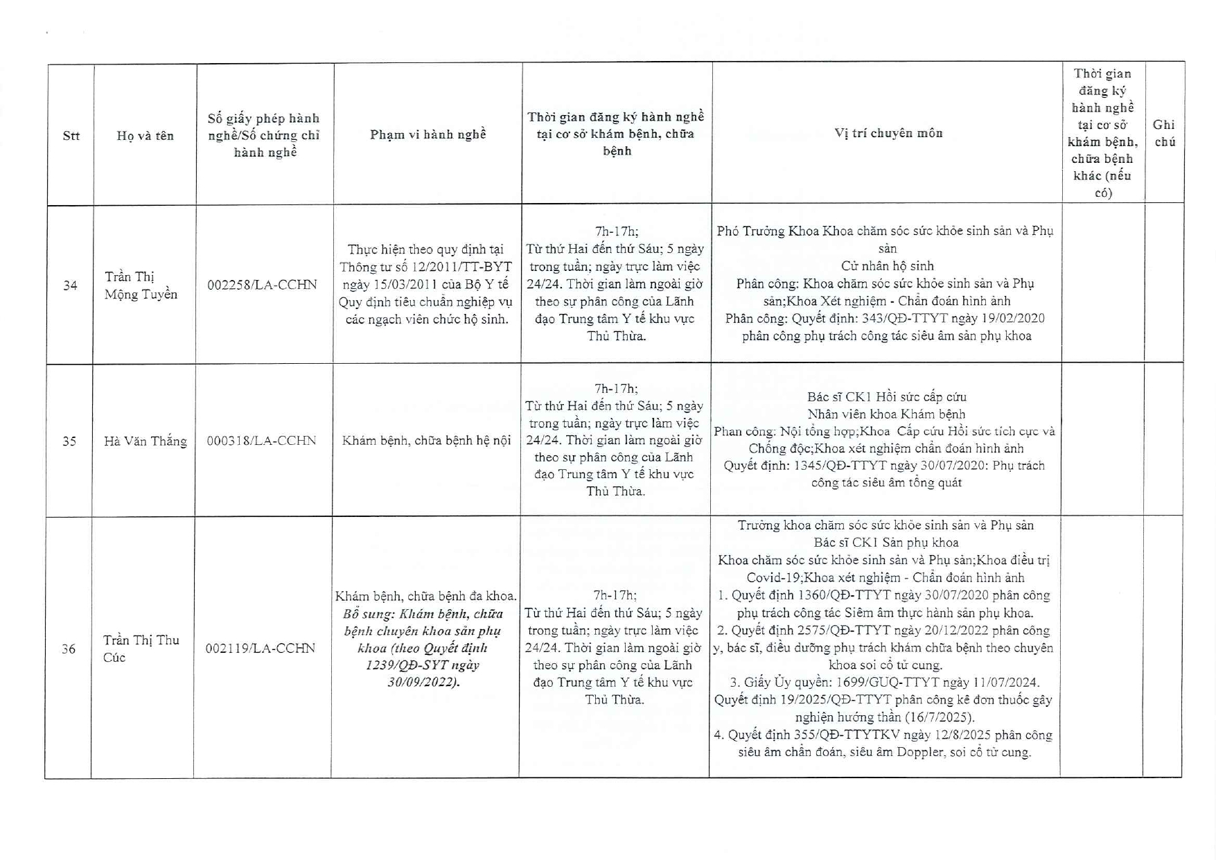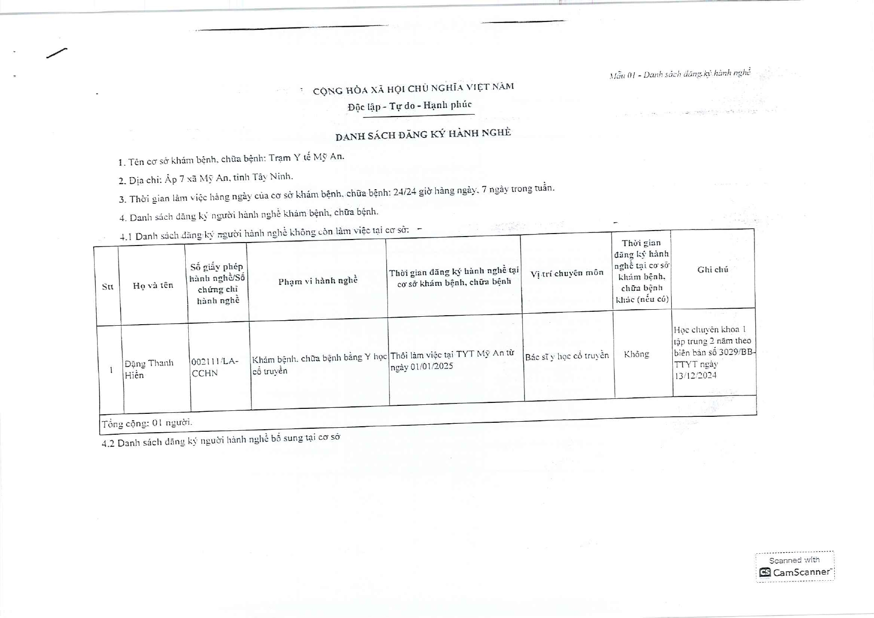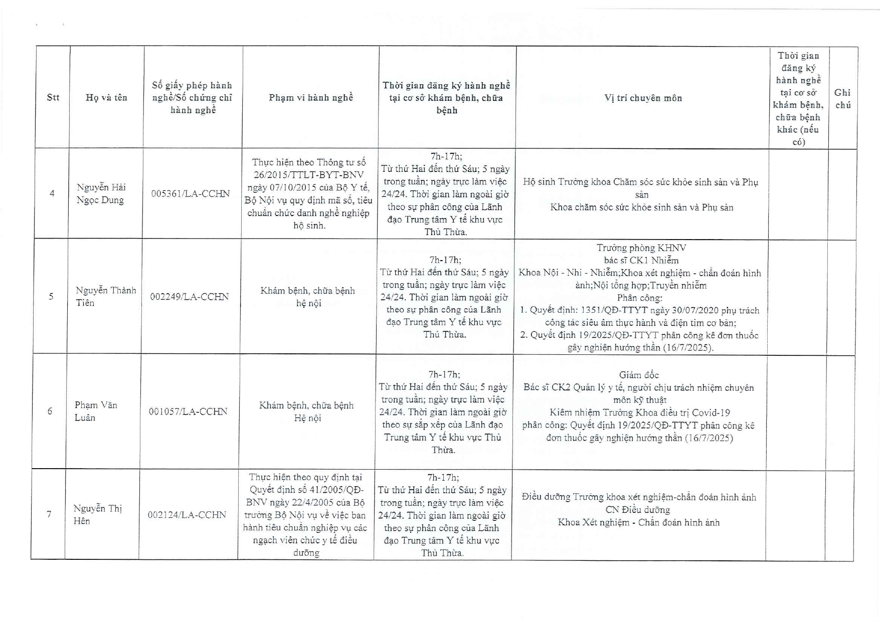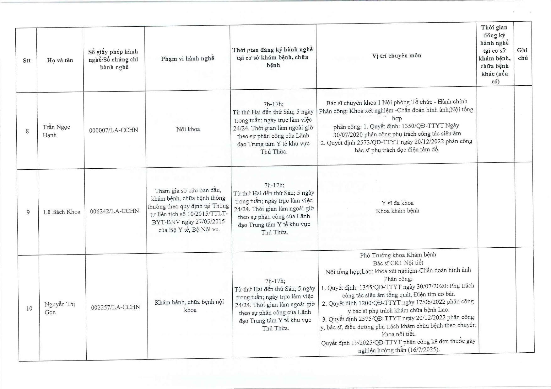 Về việc đăng ký người hành nghề khám bệnh, chữa bệnh tại Trung tâm Y tế khu vực Thủ Thừa - 09/10/2025