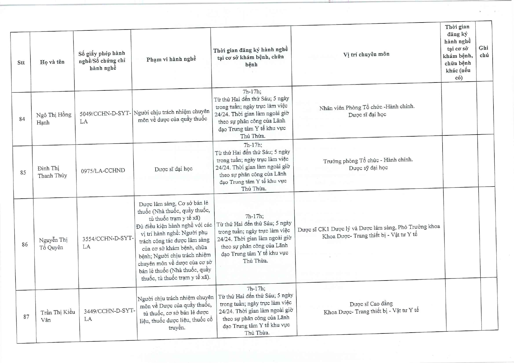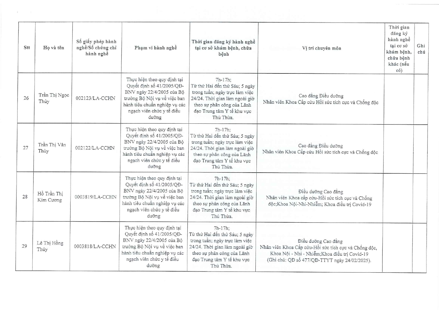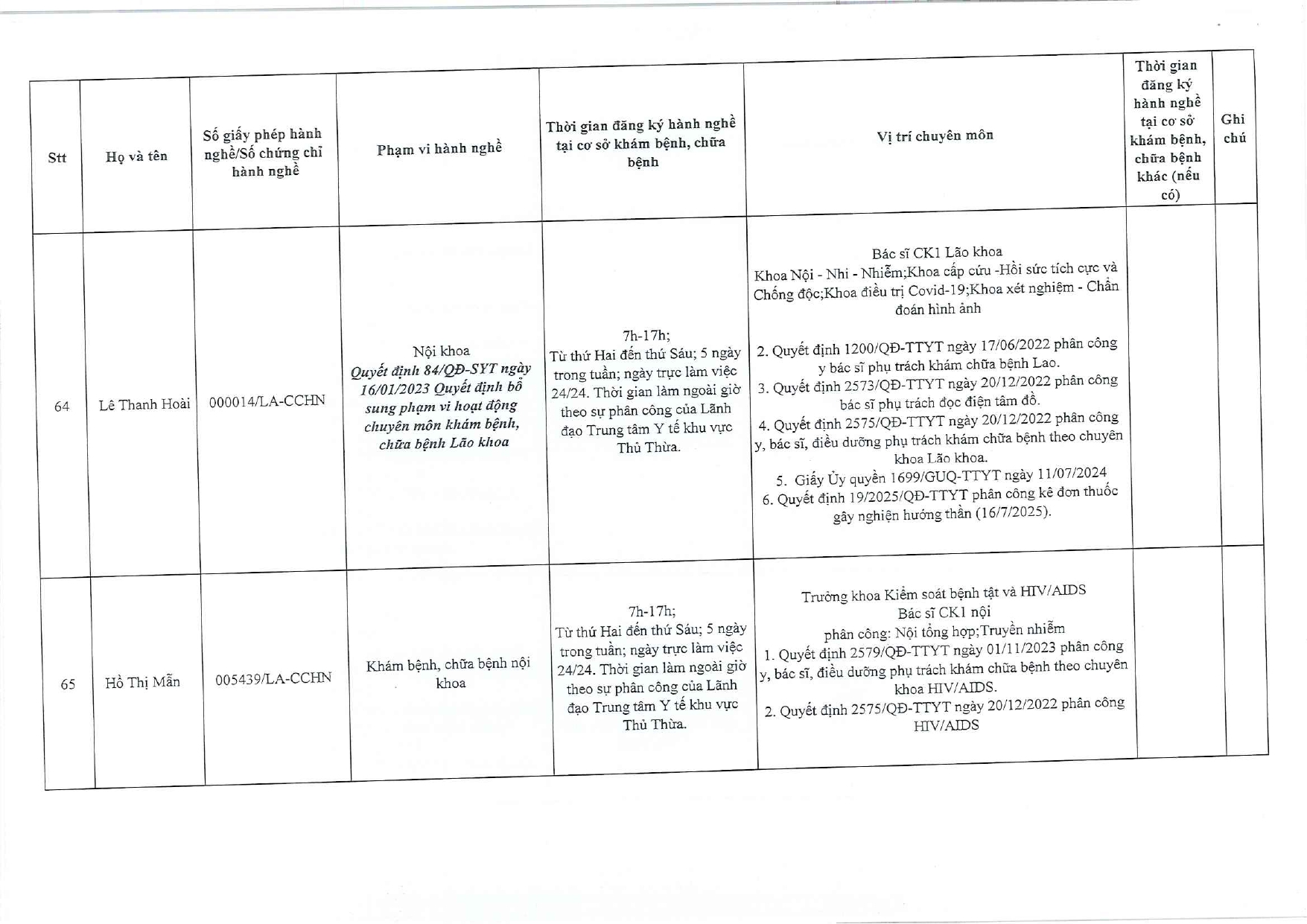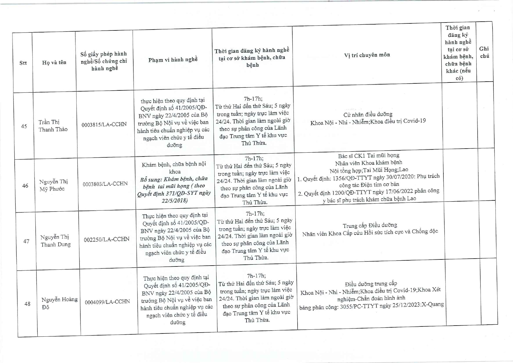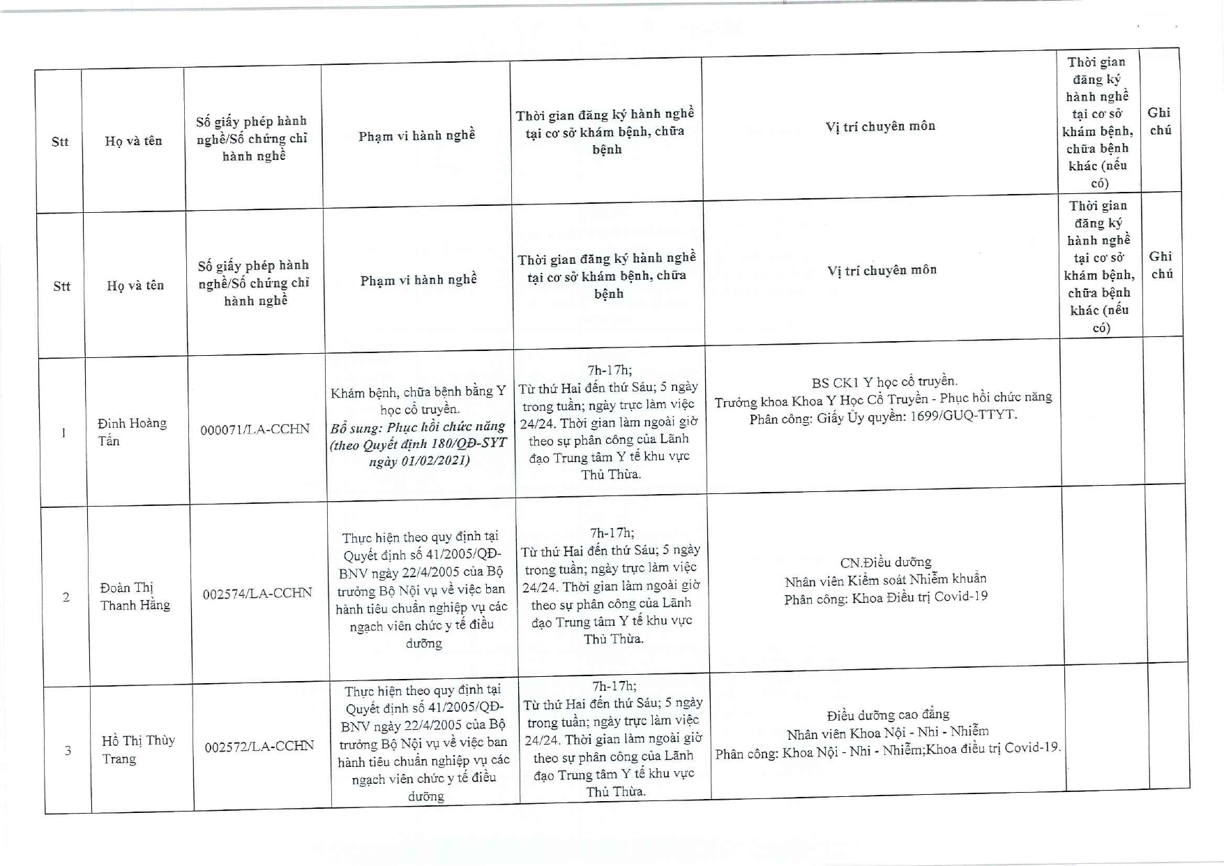 Về việc đăng ký người hành nghề khám bệnh, chữa bệnh tại Trung tâm Y tế khu vực Thủ Thừa - 09/10/2025