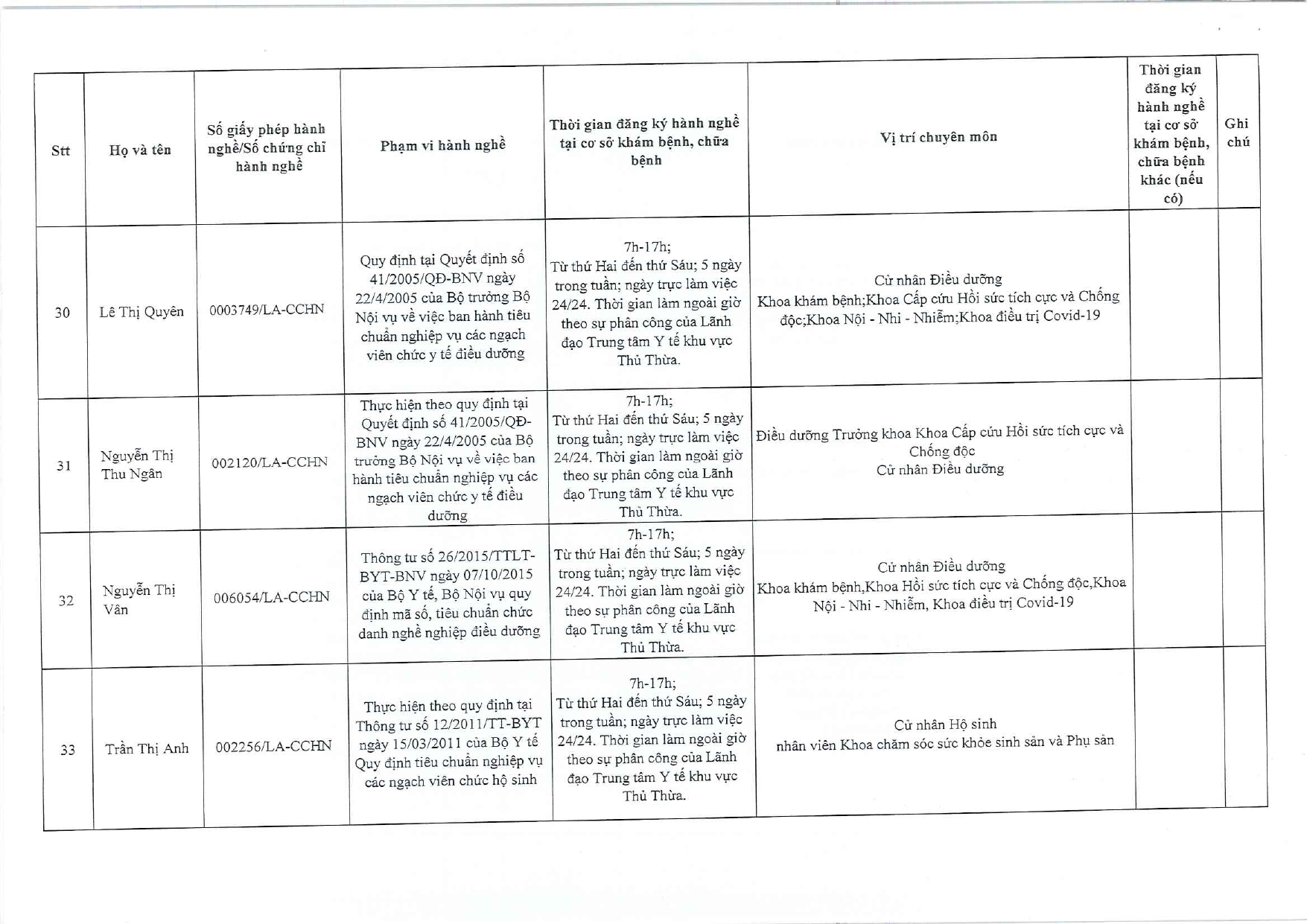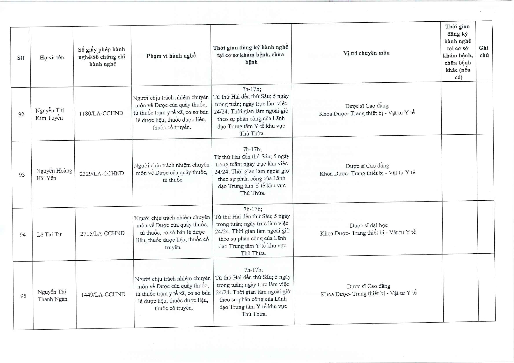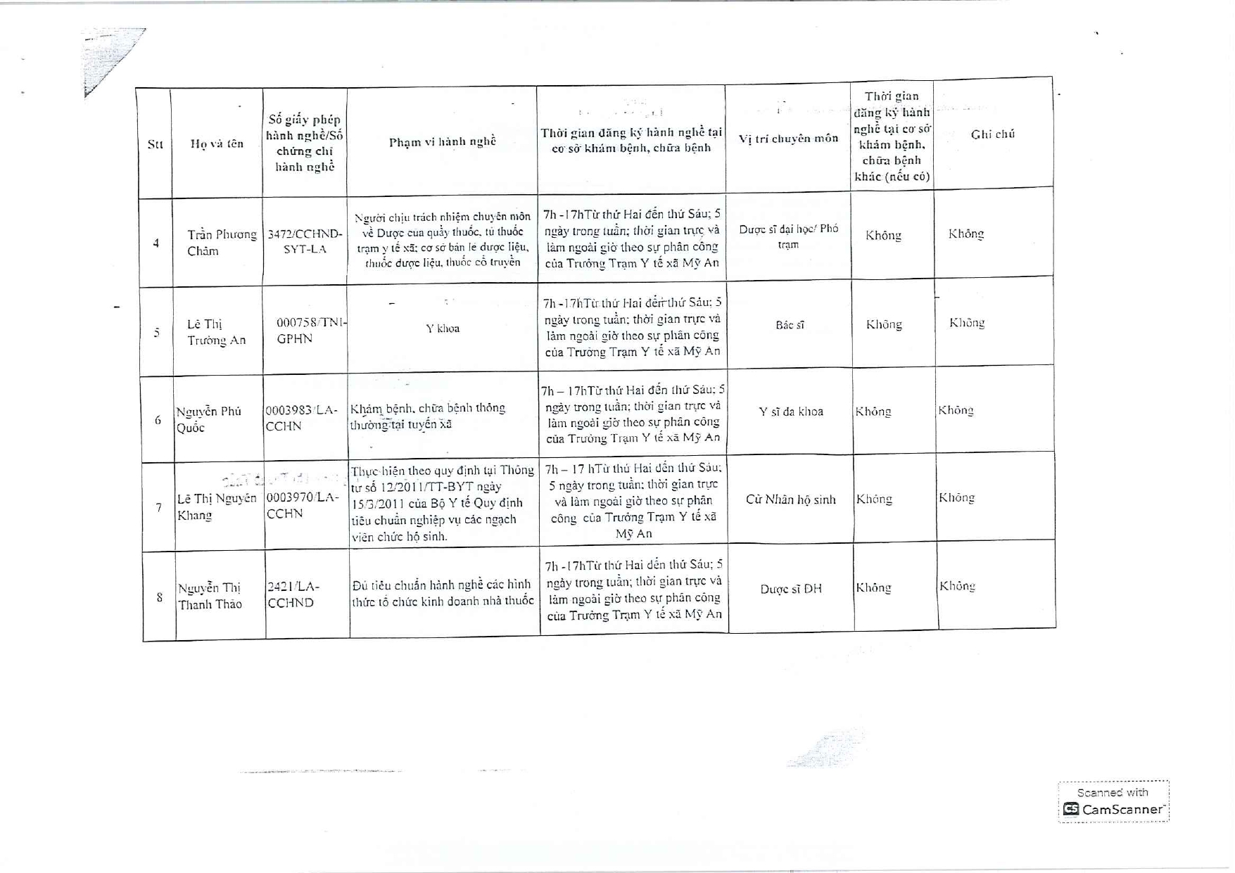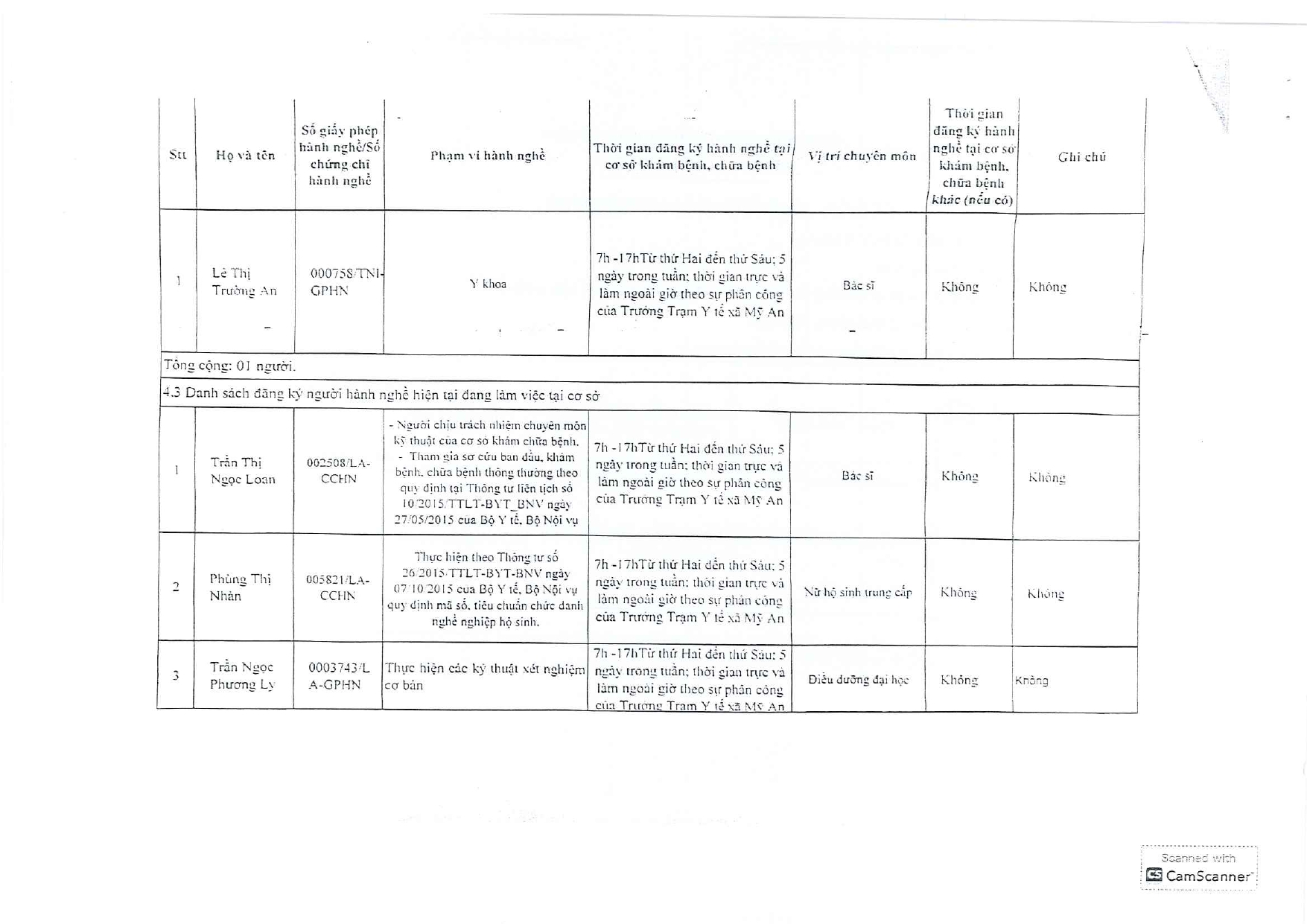 Danh sách đăng ký hành nghề.