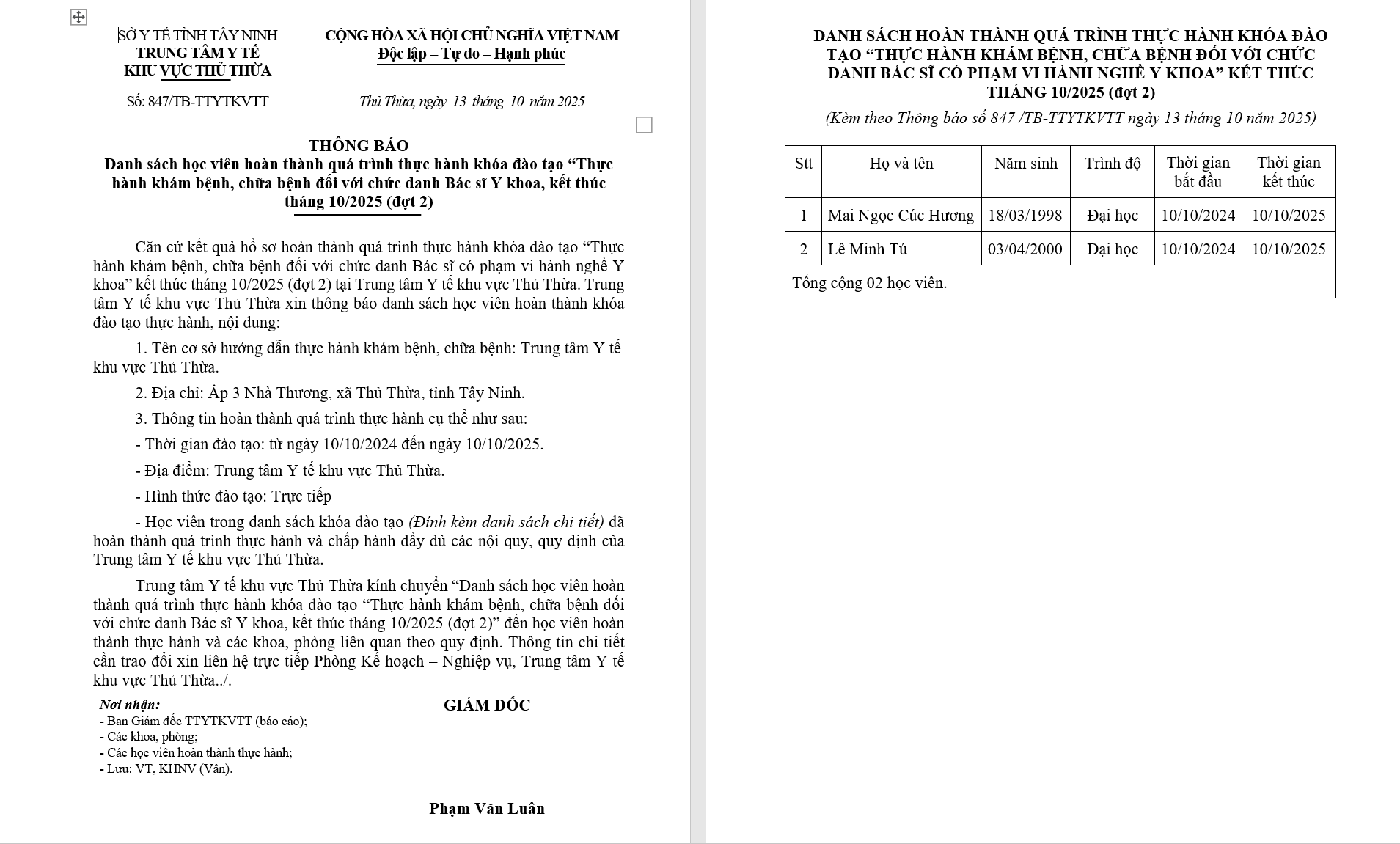 Danh sách đăng ký hành nghề. - 02/10/2025