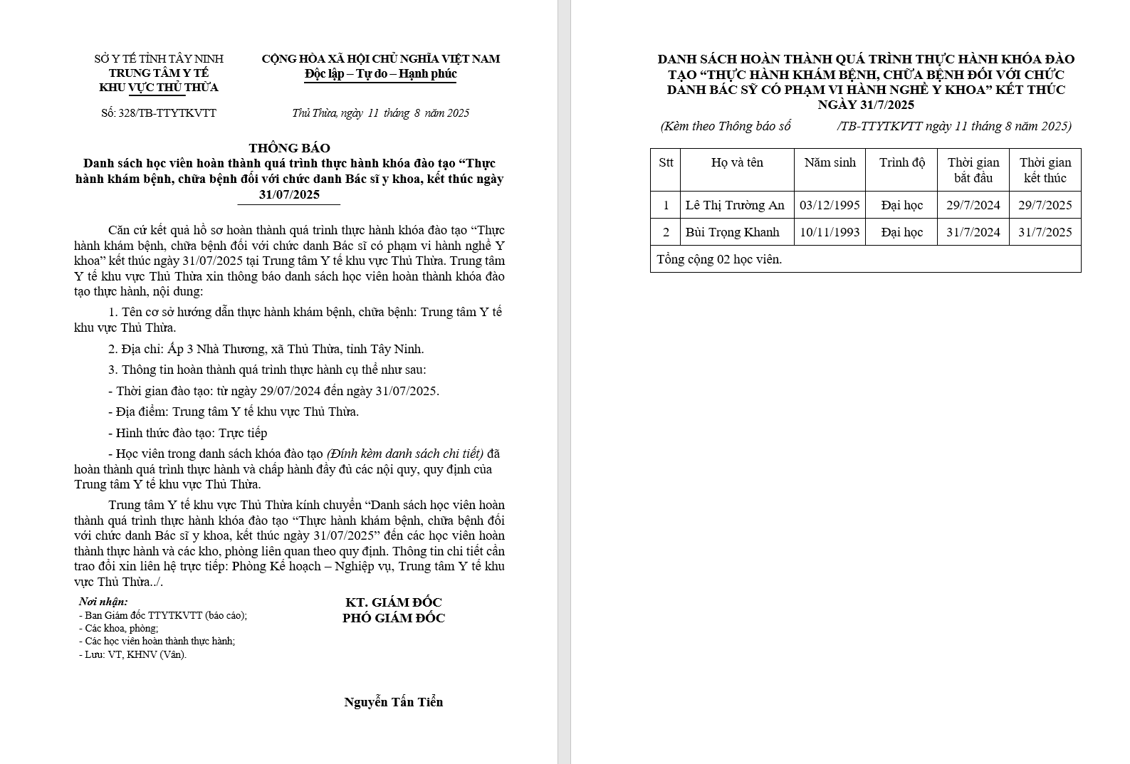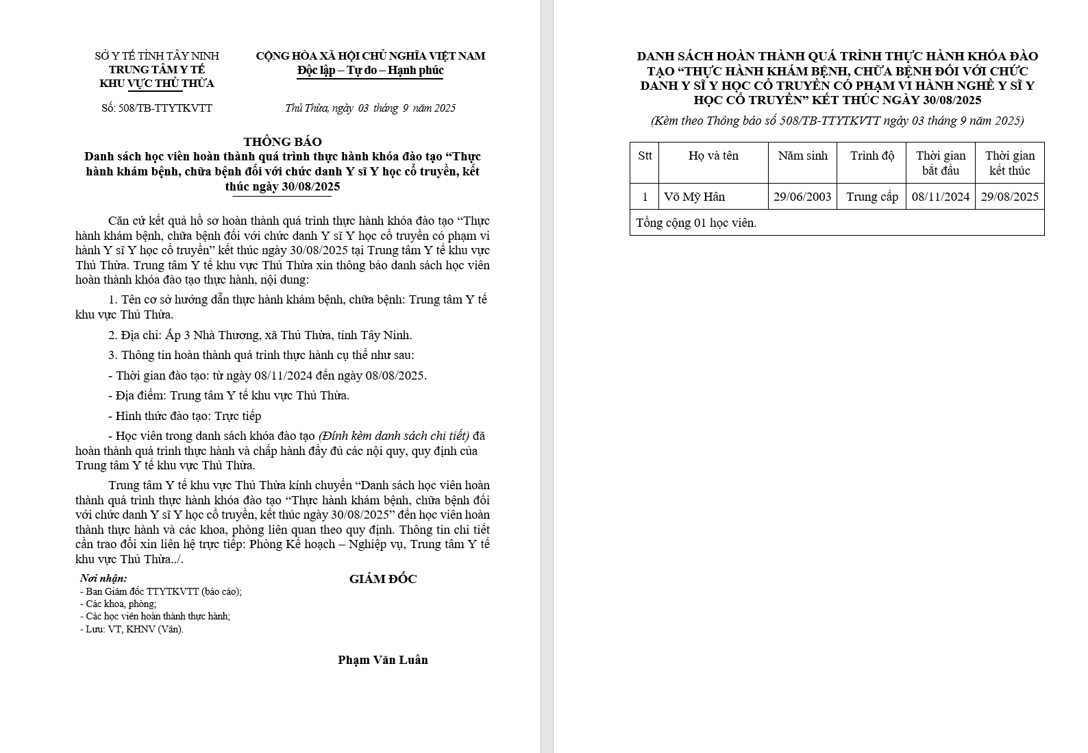 3265_SYT CONG BO THUC HANH TTYTKV THU THUA - 09/10/2025